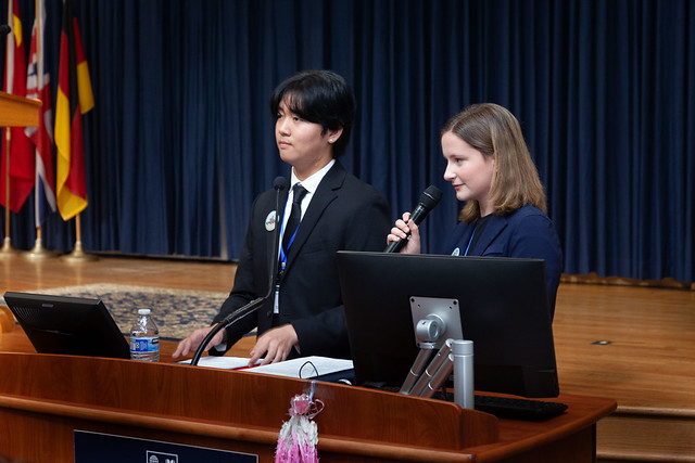 • Student Research Presentations: Students presented in-depth research on nuclear risks, disarmament, and related global challenges, demonstrating strong analytical skills and creative approaches to complex issues. Each school’s presentation offered a unique perspective, with topics ranging from the implications of artificial intelligence for weapons of mass destruction to the cultural dimensions of nuclear disarmament, the role of art and education in advancing disarmament, the fragility of nuclear deterrence, and country-specific nuclear challenges. Across all presentations, students emphasized the important role that youth can play in advancing solutions. One presentation concluded with a chamber music performance, “Remember Me,” honoring victims of nuclear weapons. Please see the student project page for each school’s presentation (forthcoming).